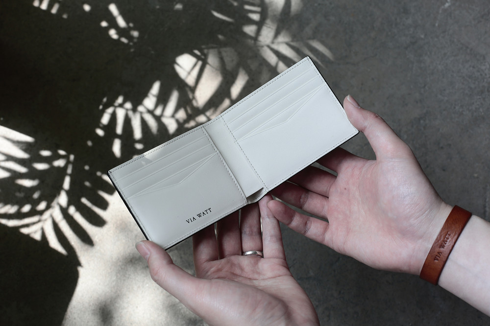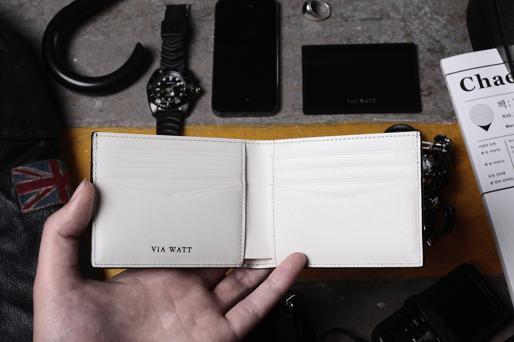 내부는 화이트 컬러의 소가죽을 사용했으며 10개의 카드 수납부와 1개의 지폐 수납부로 구성되어 있습니다.
