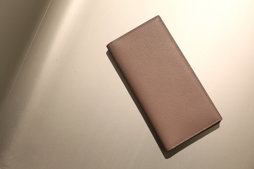 우아한 베이지 그레이 컬러의 소가죽으로 제작한 남성용 반지갑입니다.